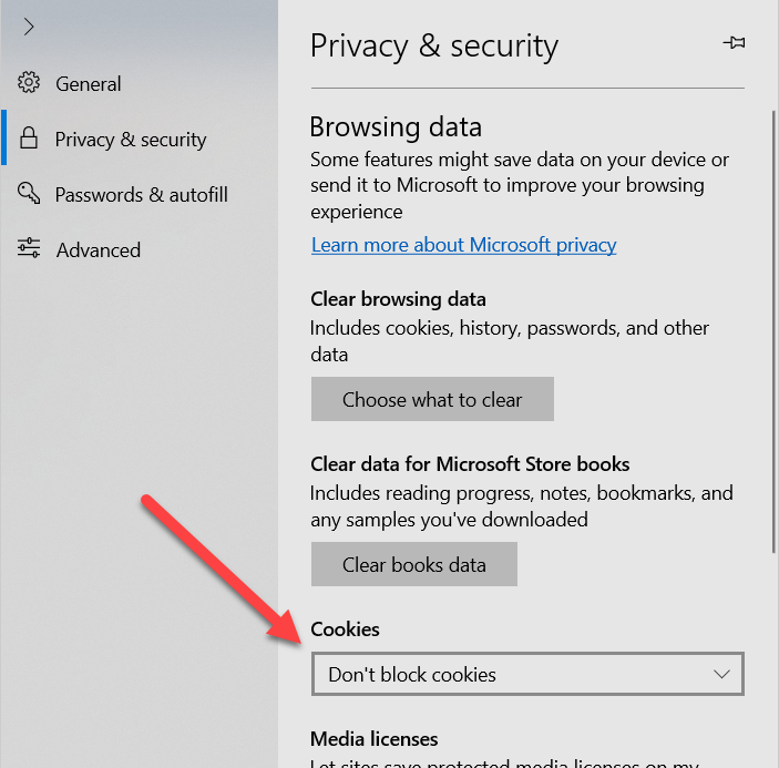 3. Scroll down to Sites that can always use cookies. Select Add.